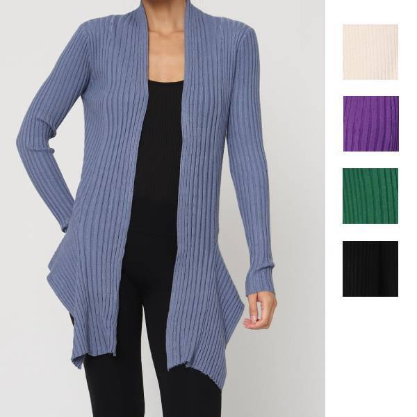 アシンメトリーデザイン リブニット ロングカーディガン ハイゲージ 5色展開 レディースカーディガン【フランスインポート CMP55】 F2512023