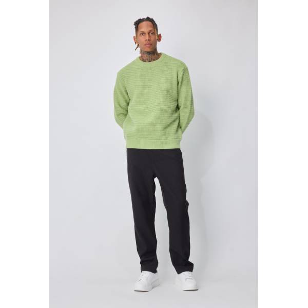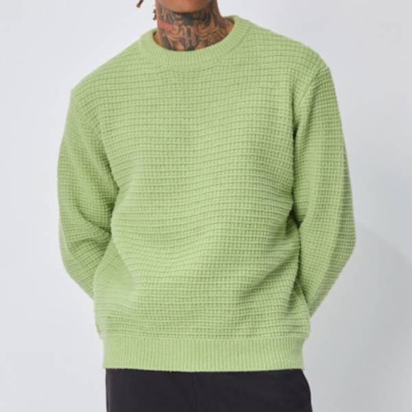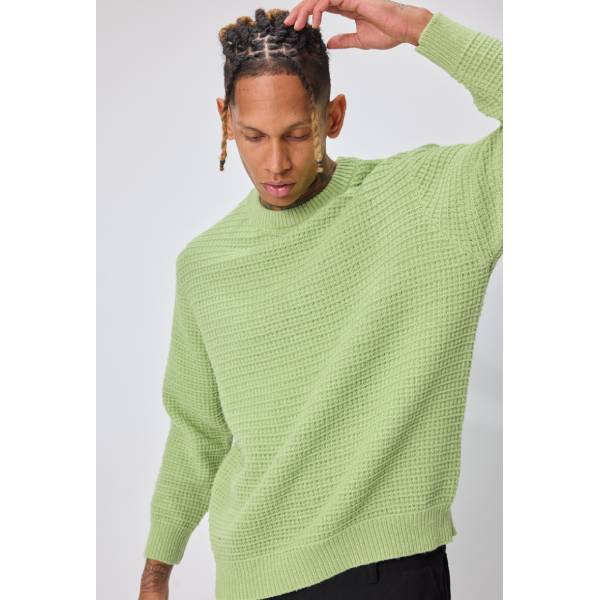 グリーン ワッフル編み ミドルゲージニット 長袖ニット 長袖トップス メンズトップス【フランスインポートFrilivin(フリリヴィン) 】 F2512041