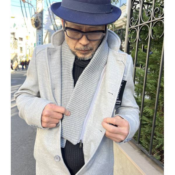 取り外し可能のリブニットマオカラーが付いているので、シーンに応じた着こなしが叶います。取り外して襟を織り込むと、チェスターコートに変身します。