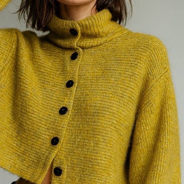 イエロー ニットカーディガン ボレロ ミドルゲージ ハイネック レディースカーディガン【フランスインポート MOCHY】 F2512031