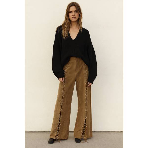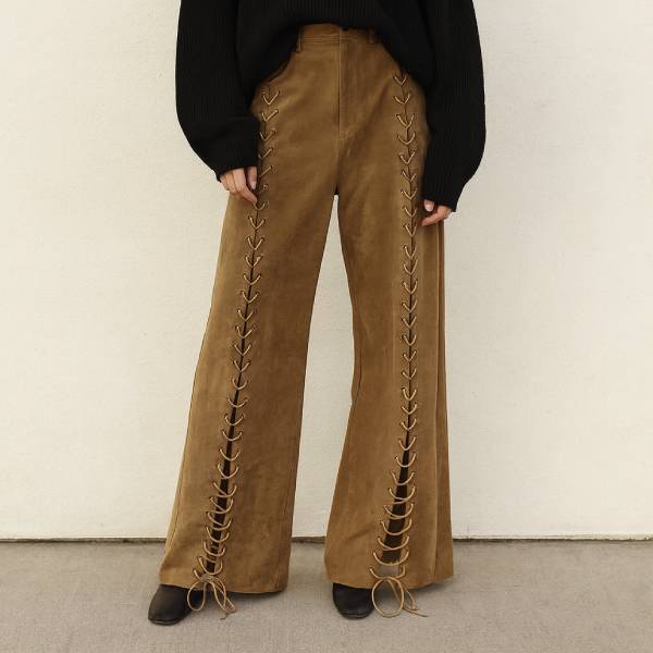 ストレッチエコスエード フロントレースアップデザイン ワイドパンツ レディースボトムス【フランスインポート MOCHY】 F2512035
