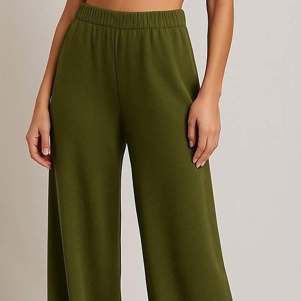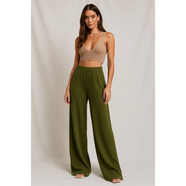 カーキ ハイゲージニットパンツ ワイドパンツ リラックスパンツ ゴムウエス レディースボトムス【フランスインポート MOCHY】 F2512034