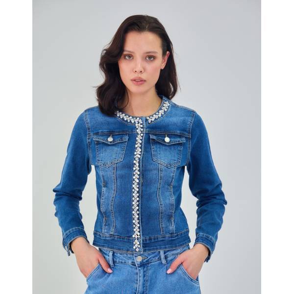 パール&ビジュー ストレッチデニム カラーGジャン デニムジャケット レディースアウター インポートジャケット【フランス インポート Ana&Lucy】 F2601018