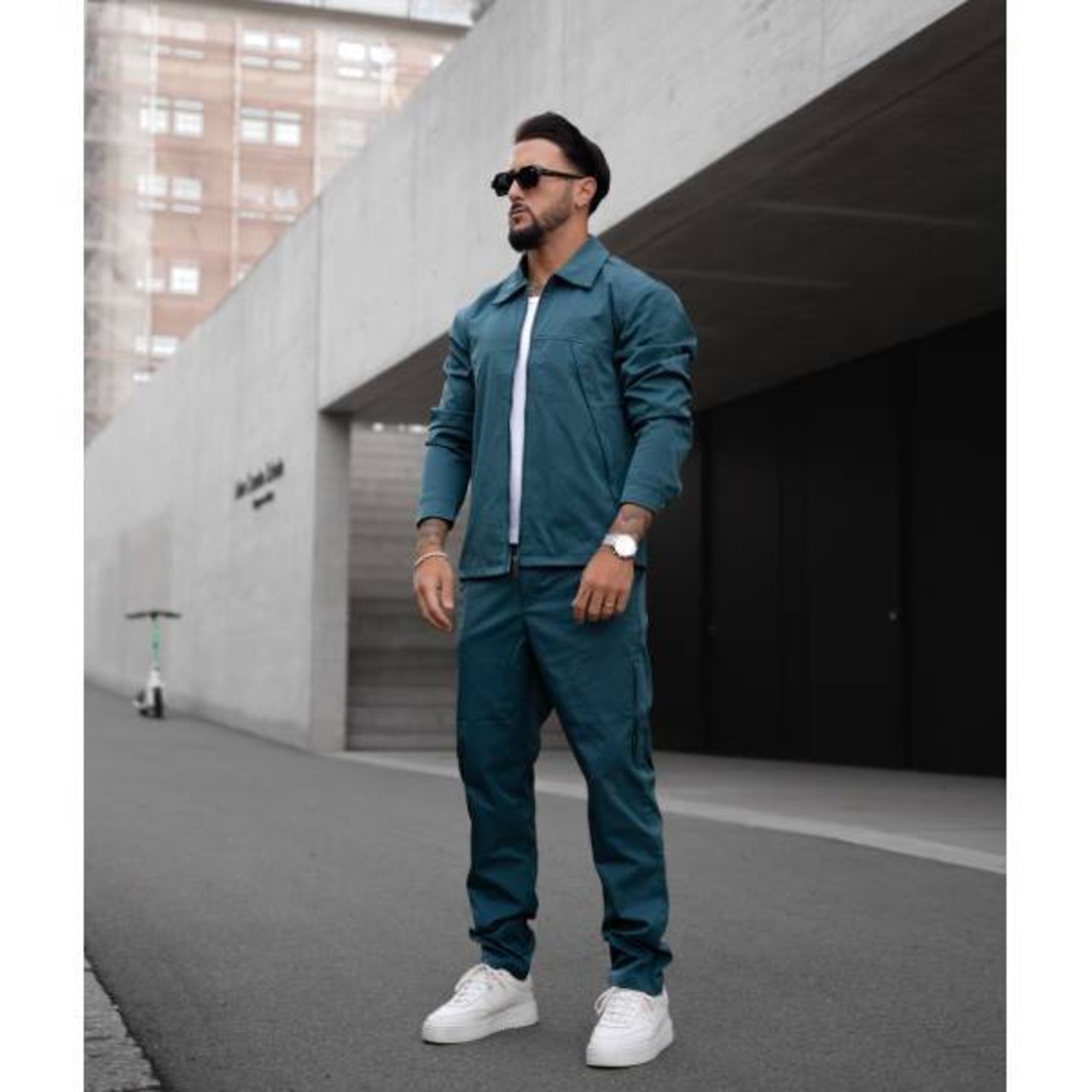 ブルーグリーン 無地プレーン ジップアップジャケット セットアップ対応 メンズアウター インポートジャケット【フランスインポートFrilivin(フリリヴィン) 】 F2602007