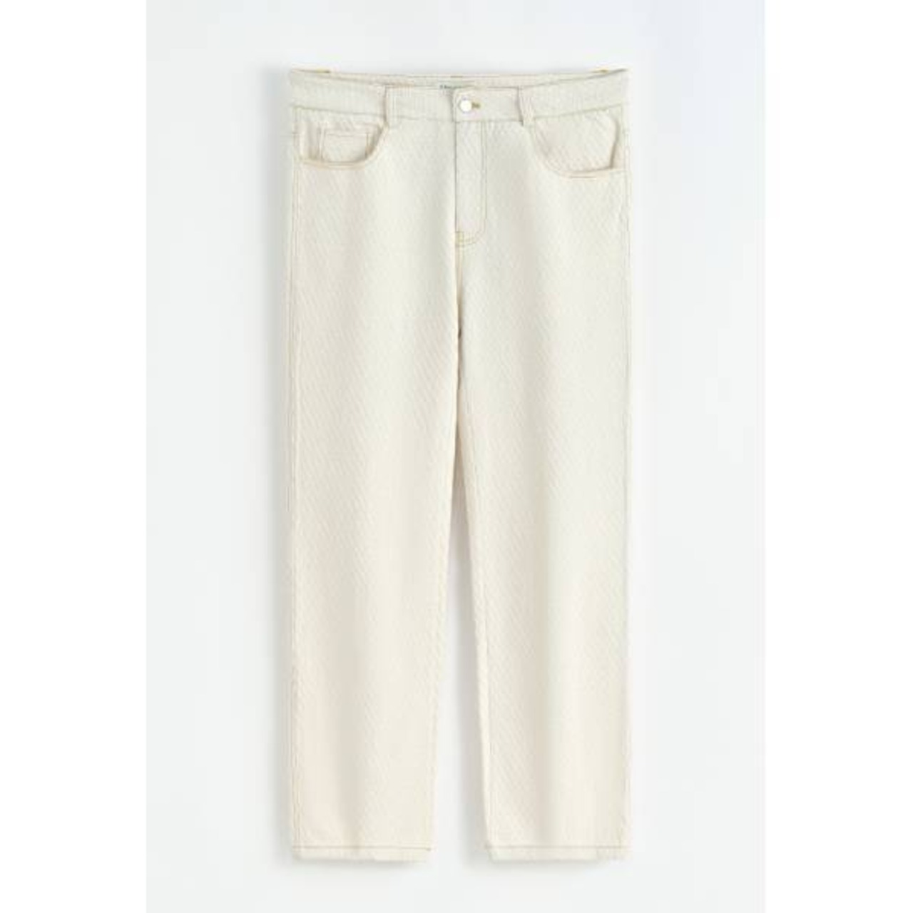 アイボリーのやわらかな色合いで羽織るだけで春らしさが出る魅力的なボトムスです。