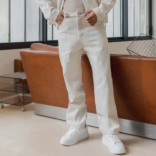 アイボリー ジャガードストレートパンツ セットアップ対応 メンズボトムス インポートパンツ【フランスインポートFrilivin(フリリヴィン) 】 F2602010