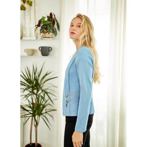 ライトブルー エコスエード オープンフロントジャケット レディースジャケット インポートアウター【フランスインポート”H.F”】 F2602002 BL