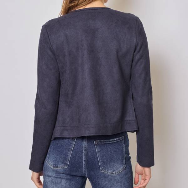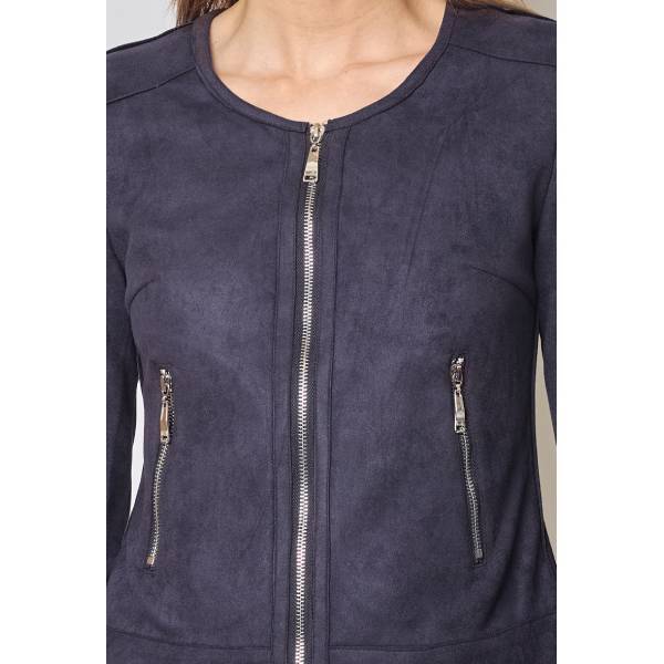 ネイビー エコスエード ノーカラージャケット レディースジャケット インポートアウター【フランスインポート”H.F”】 F2602003