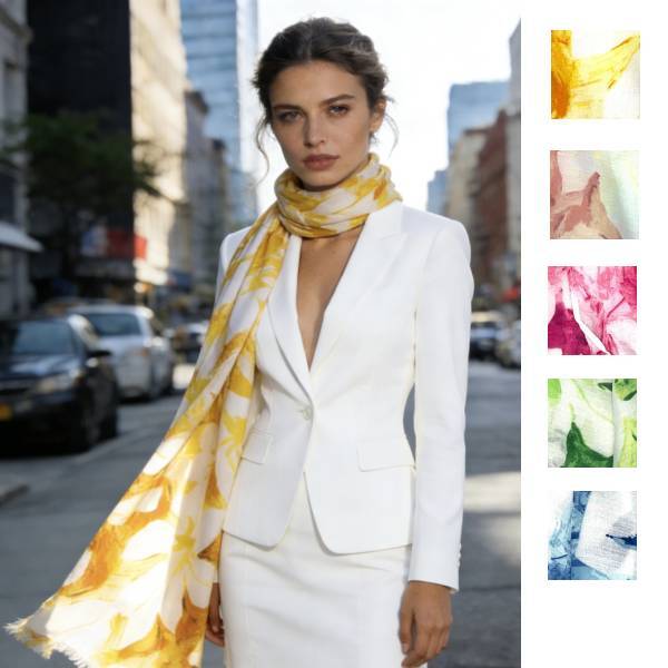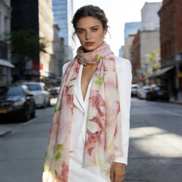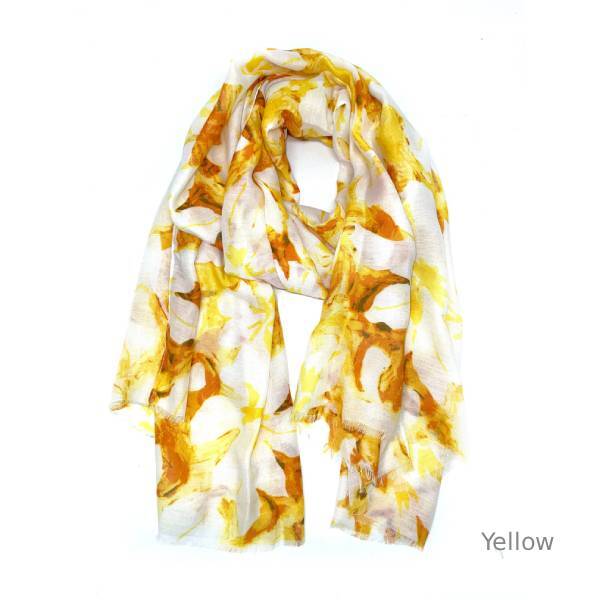 水彩フラワー柄ストール 大判ストール ユニセックス ビスコースコットン 5色展開【フランス インポート LINETA】F2601028