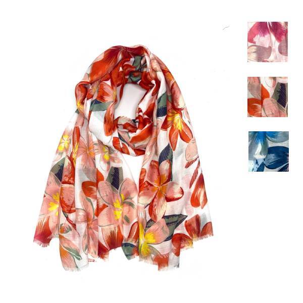 フラワー柄ストール 大判ストール ユニセックス ビスコースコットン 3色展開【フランス インポート LINETA】F2601029