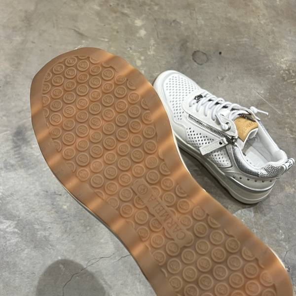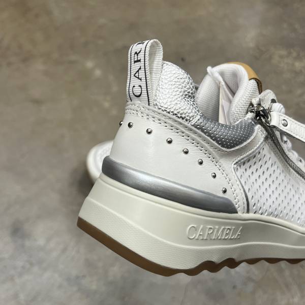 ホワイト 本革 レザースニーカー パンチングレザー サイドジップ 牛革 レディースシューズ インポートシューズ【スペインインポート CARMELA(カルメラ)】 F2602013