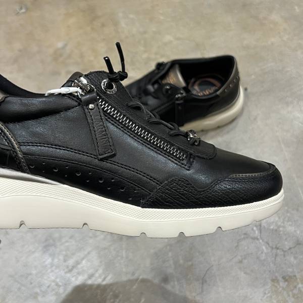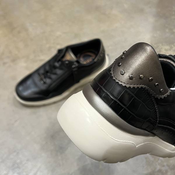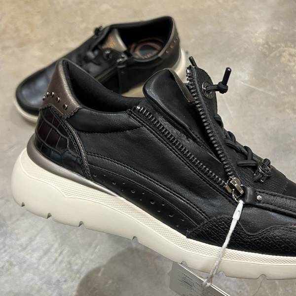 ブラック 本革 レザースニーカー コンビデザイン サイドジップ 牛革 レディースシューズ インポートシューズ【スペインインポート CARMELA(カルメラ)】 F2602014 BK