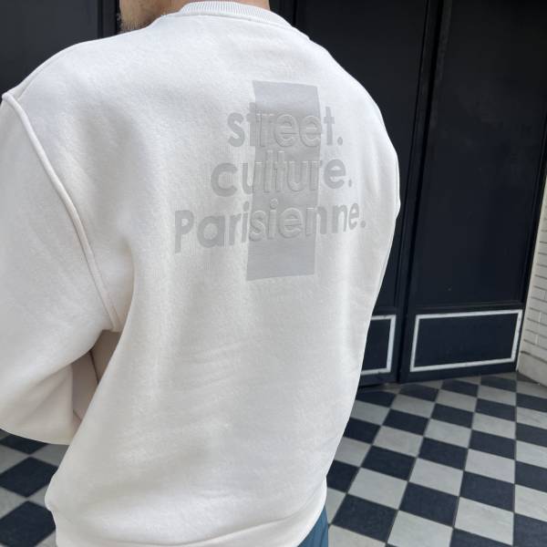 アイボリー フロントバック文字プリント オーバーサイズ 長袖トレーナー メンズトップス インポートトップス【フランスインポート IKAO(イカオ)】 F2601021