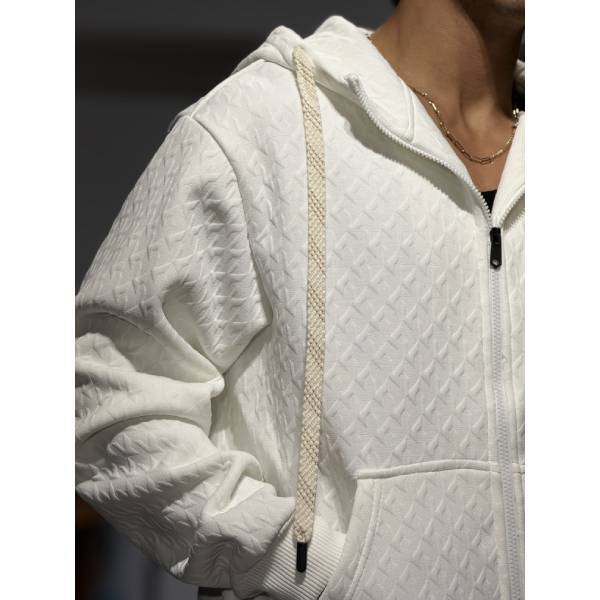 ホワイト ジャガード ジップアップパーカー フード付き メンズパーカー インポートアウター【イタリアインポート UNIPLAY(ユニプレイ)】 F2603005