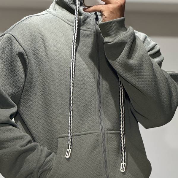グレー ジャガード ジップアップパーカー フード付き メンズパーカー インポートアウター【イタリアインポート UNIPLAY(ユニプレイ)】 F2603006