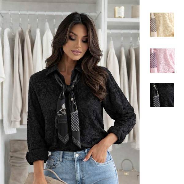 ジャガード 長袖シャツ スカーフ取り外し可 長袖トップス 3色展開 レディーストップス【フランスインポート FORCYMA】 F2601011