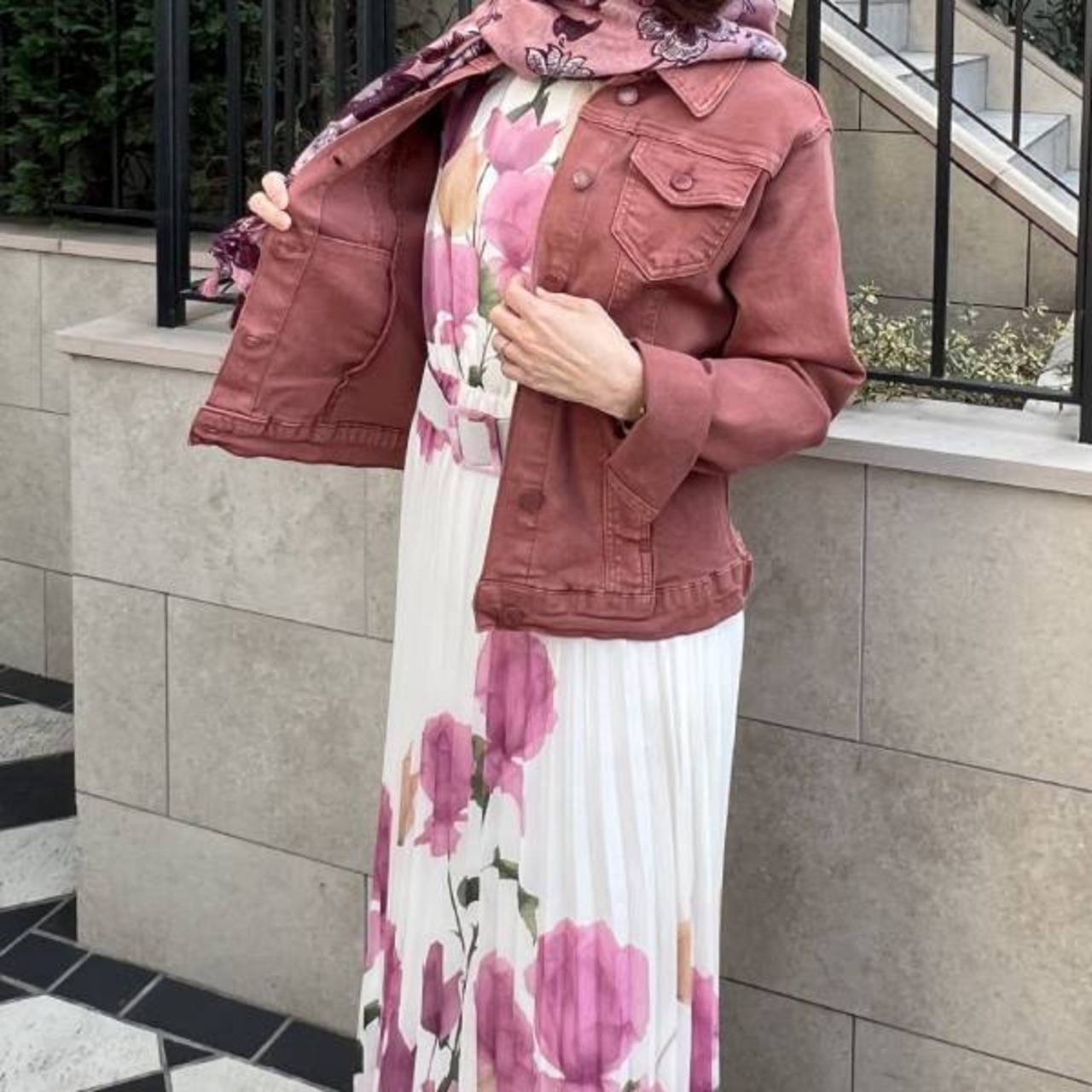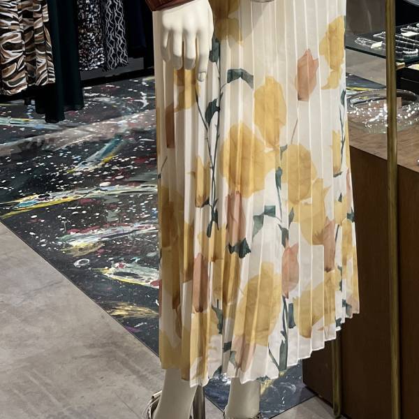 華やかな花柄が印象的でフェミニンなスタイルを演出します。