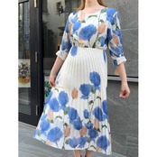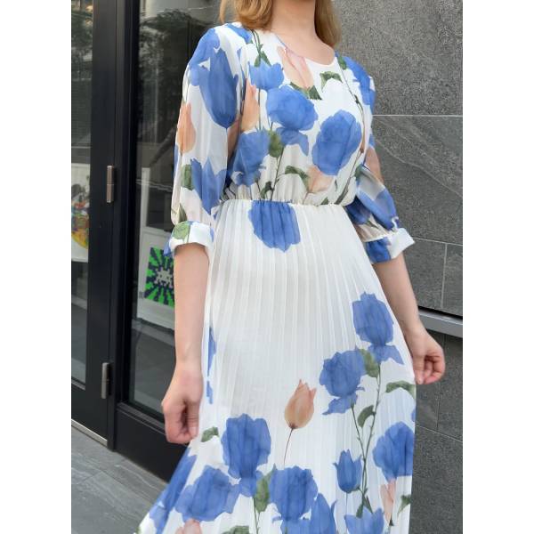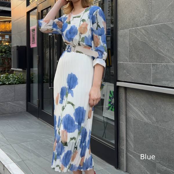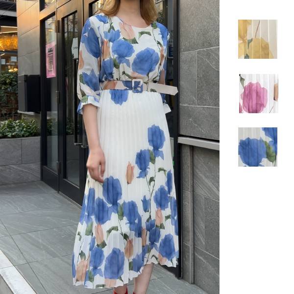 フラワープリント ベルト取り外し可 プリーツワンピース ロングワンピース 3色展開 レディースワンピース インポートワンピース【フランスインポート FORCYMA】 F2601016