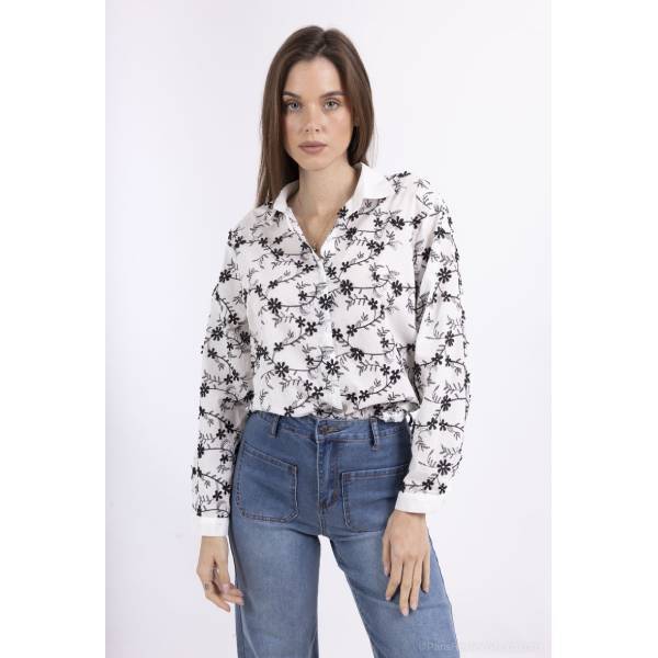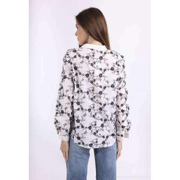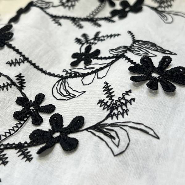 ブラック フラワー刺繍 シャツブラウス 長袖トップス レディーストップス【フランスインポート SO SWEET】 F2603011