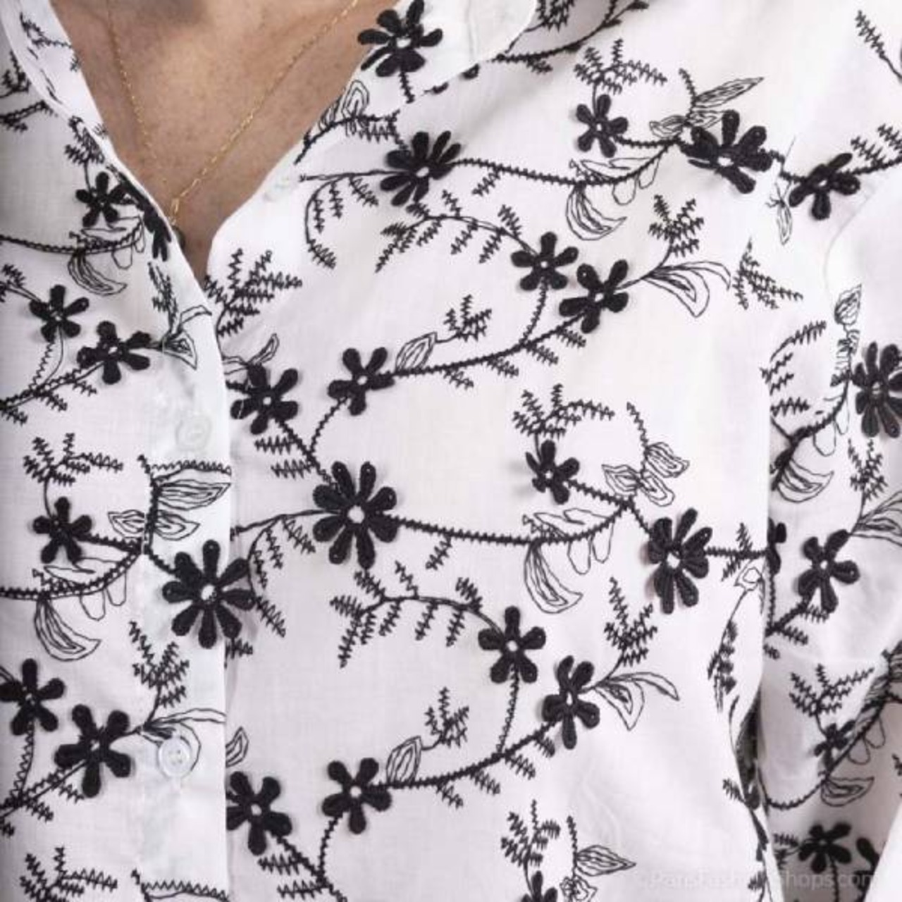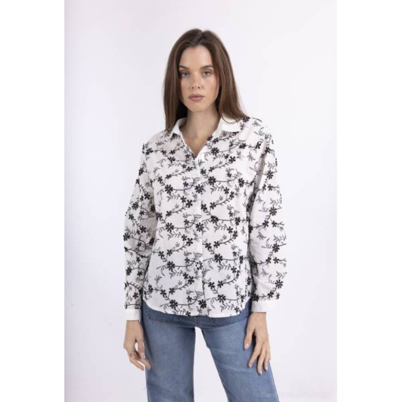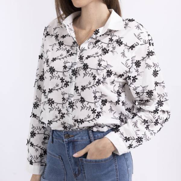 花模様の刺繍が全体に施されたこのシャツは、控えめなデザインながらもコーディネートを印象的にしてくれます。