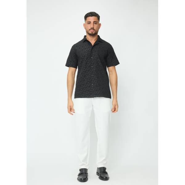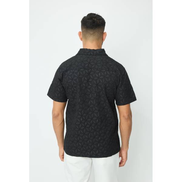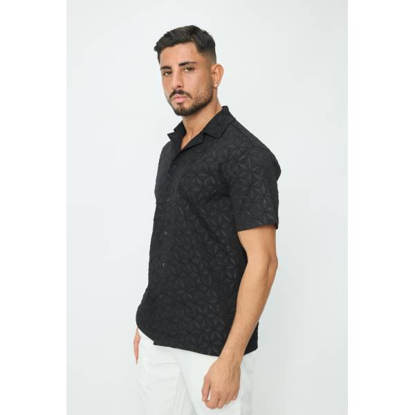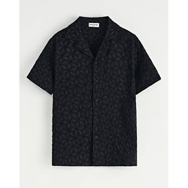 ブラック 立体フラワージャガード半袖シャツ 柄シャツ メンズシャツ インポートシャツ【フランスインポートFrilivin(フリリヴィン) 】 F2603021