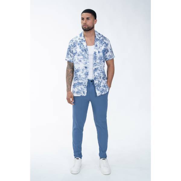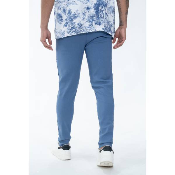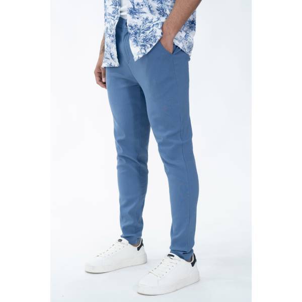 ブルー 無地プレーン スリムテーパードパンツ ストレッチ イージーパンツ メンズパンツ オフィスカジュアル インポートボトムス【フランスインポートFrilivin(フリリヴィン)】 F2603027