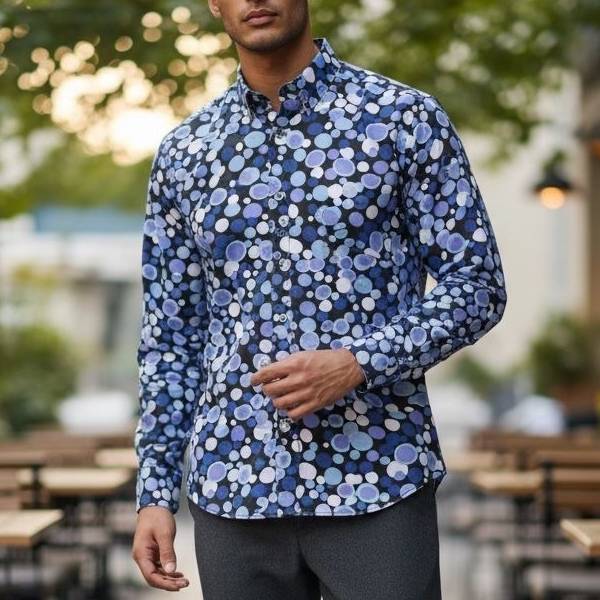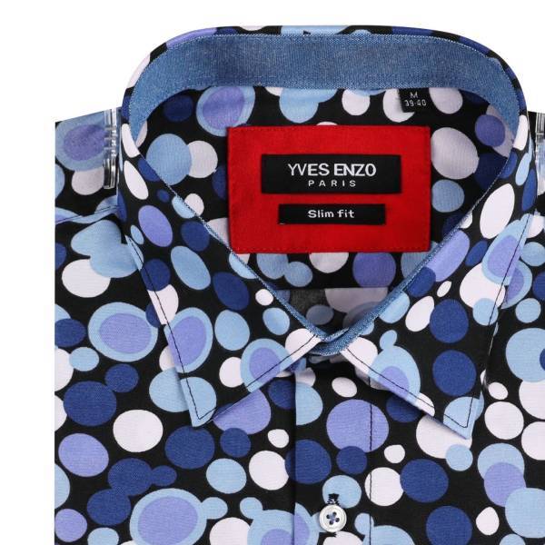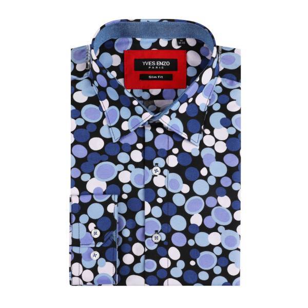 マルチドットプリント スリムフィットタイプ インポート柄シャツ プリントシャツ メンズプリントシャツ【フランスインポート Yves Enzo(イヴエンツォ)】 F2603038