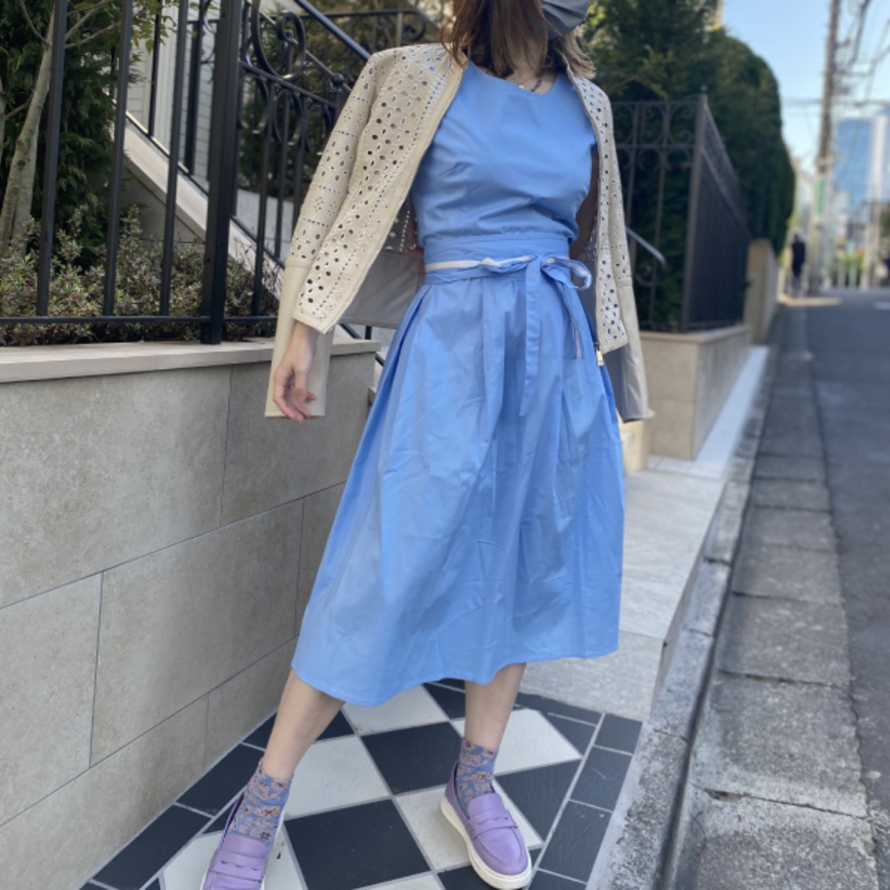 ウエストひもを締めれば、お洒落にアレンジしつつスタイルアップも!