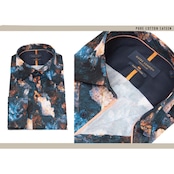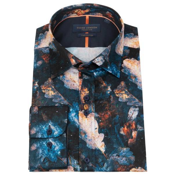 ブルー ダークリーフプリント インポート柄シャツ プリントシャツ メンズプリントシャツ【イギリスインポート GUIDE LONDON(ガイドロンドン)】 LS76718-bl
