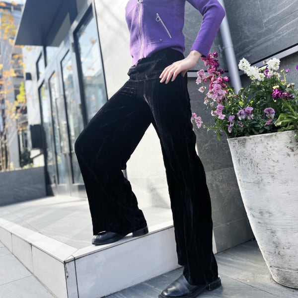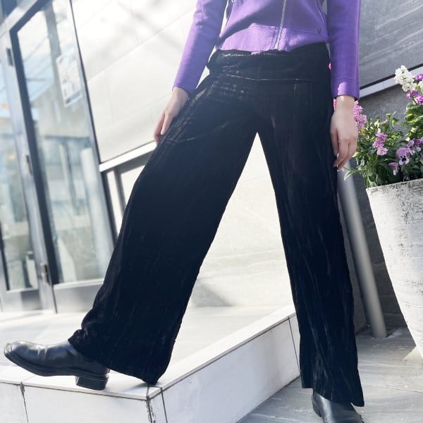 ブラック ベルベット ワイドパンツ【フランスインポート Elly White (エリーホワイト)】 F2312005