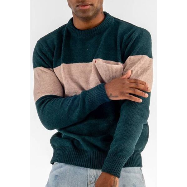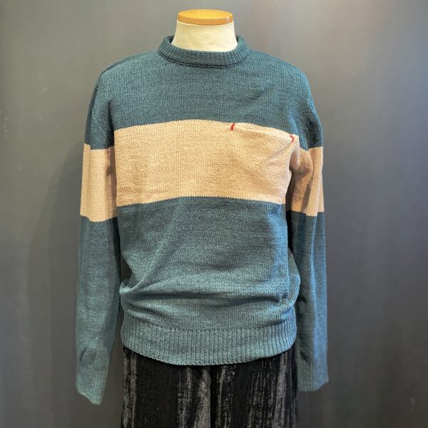 バイカラーニットトップス クルーネック 長袖 ポケット付き【フランスインポート MentexHomme(メンテックスオム)】 F2312055