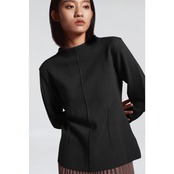 首元のモックネックが首元をすっきりと見せてくれるだけでなく、寒い季節にも暖かさをキープします。