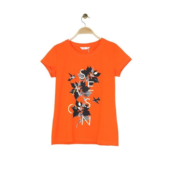 華やかなカラーとフラワープリントが目を引く、ストレッチコットン素材の半袖トップス。