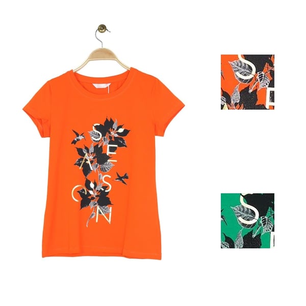フラワープリント ストレッチコットン半袖Tシャツ【フランスインポート ATTRAIT】 F2406001