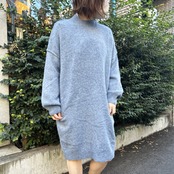 ミディ丈ニットワンピース モックネック ドロップショルダーデザイン【フランスインポート COPPEROSE】 F2410006