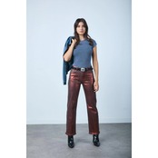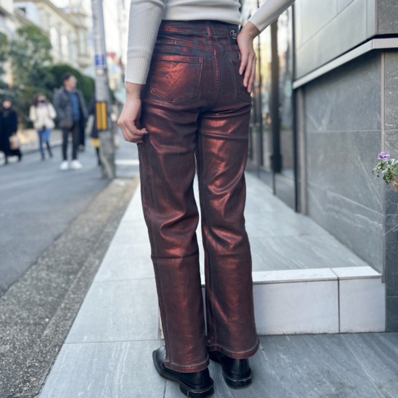 グロスコーティング ストレッチデニム ストレートパンツ ワイン【フランス インポート Toxik3(トキシック)】F2412001
