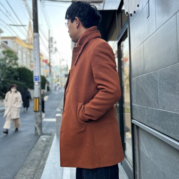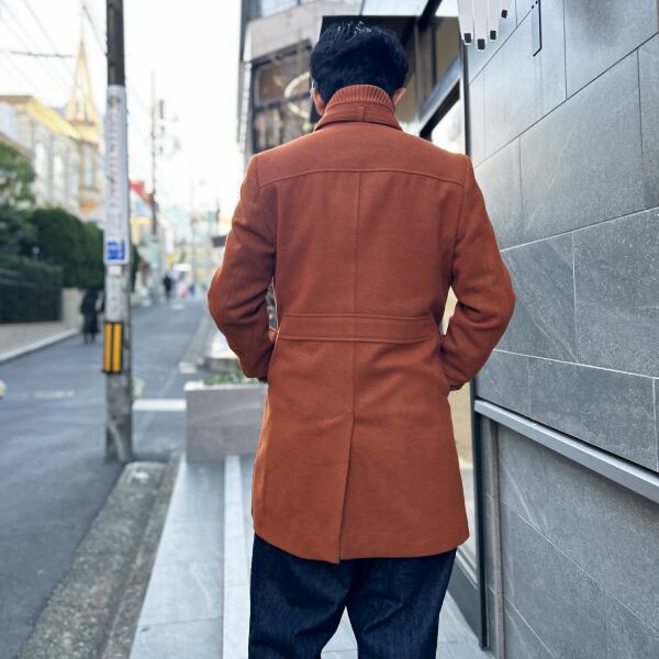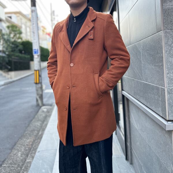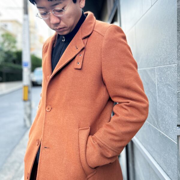 2wayコート オレンジ メンズハーフコート リブ襟スタンドカラー チェスターコート【フランスインポートMackten】F2412096