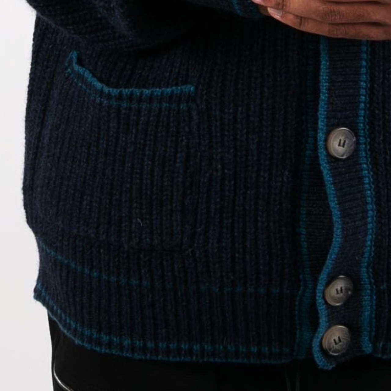 配色ラインニット メンズカーディガン あぜ編みミドルゲージニット【イタリアインポート UNIPLAY】 F2412104