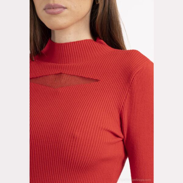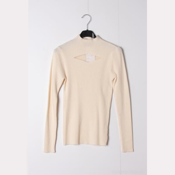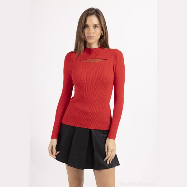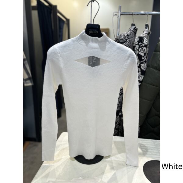 リブニット スクエアシースルー モックネックニットトップス 8色【フランスインポート MJ】 F2412075