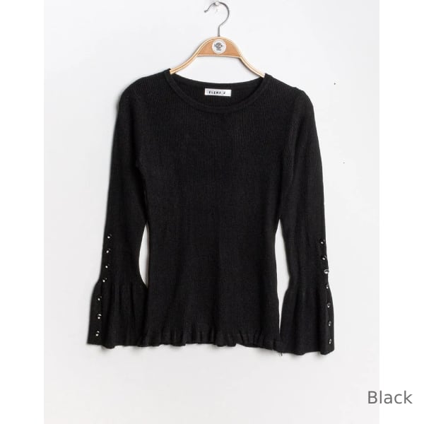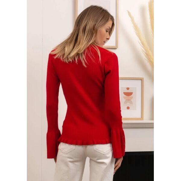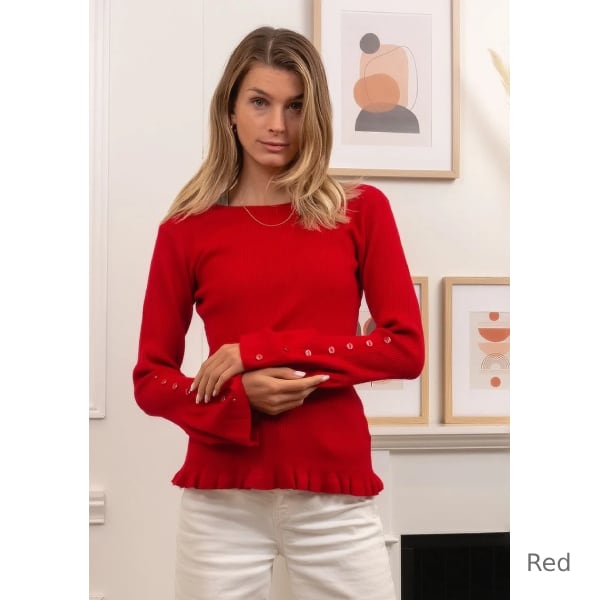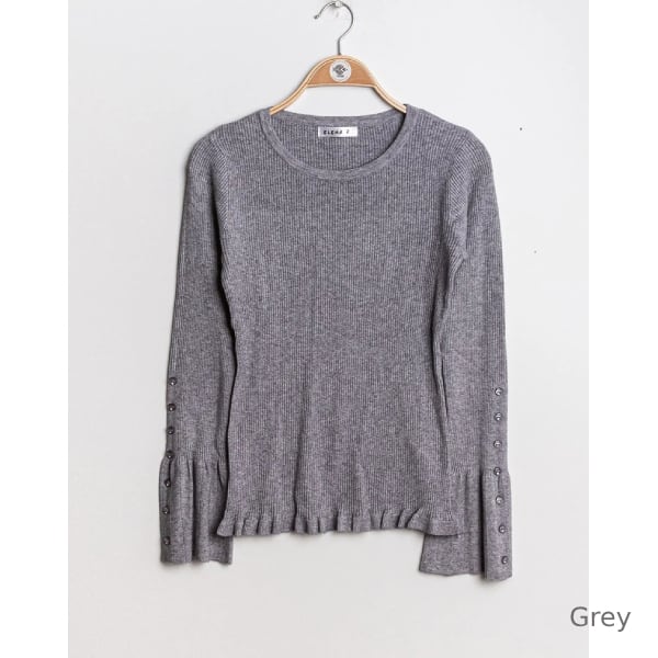 カラーニット長袖トップス フリルスリーブ レディーストップス【フランスインポート”ELENA Z”】 F2412086