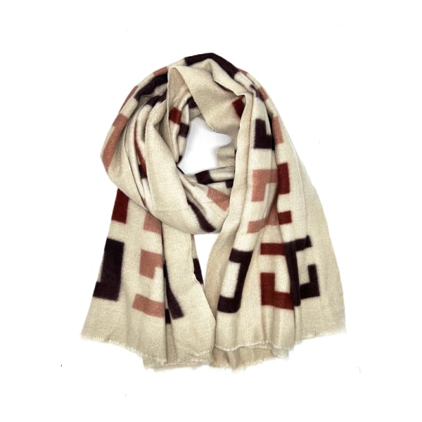 文字風幾何学プリント 大判ストール 2色展開 メンズ&レディース ユニセックスストール 【フランス インポート LINETA】F2501020